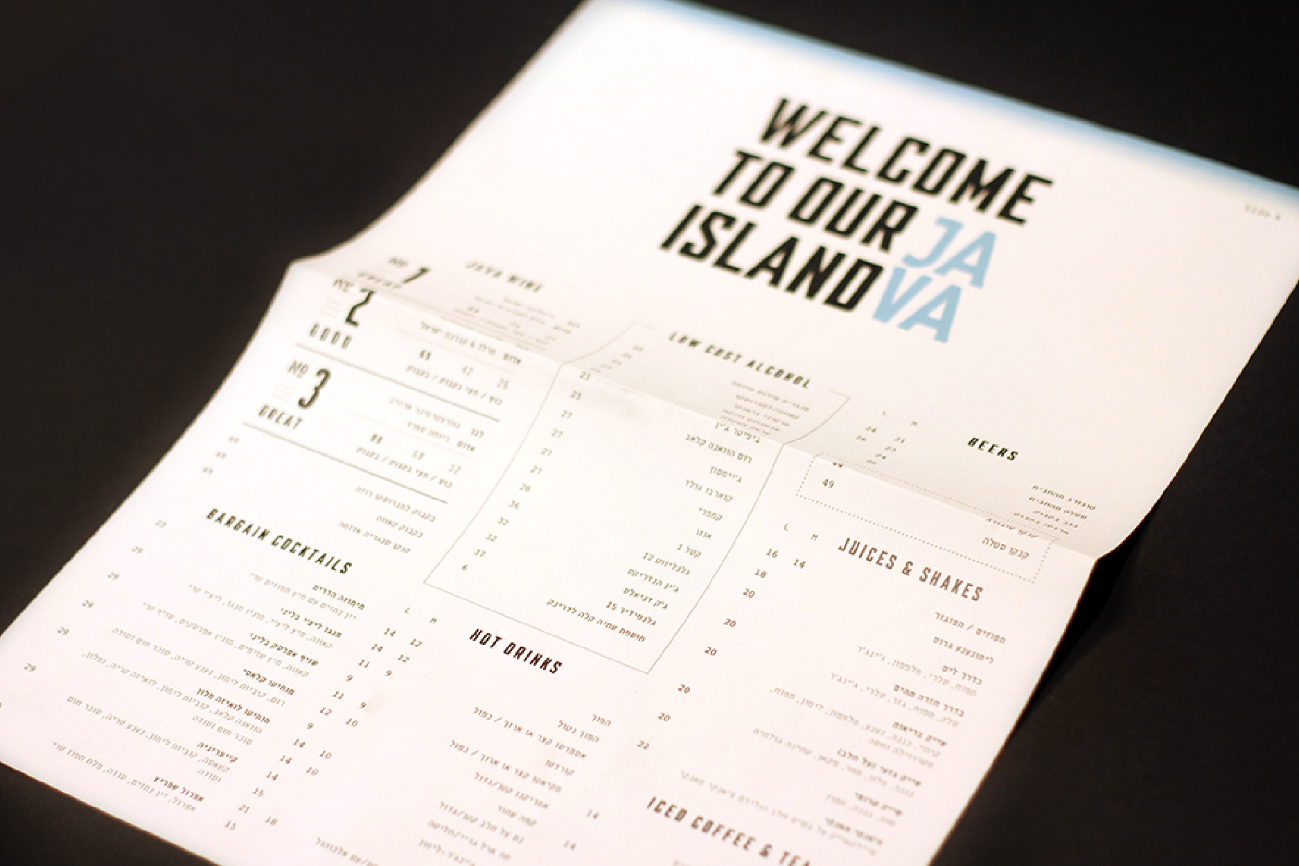 Design a brand for Tel Avivian coffee shop - JAVA. logo, food menu, wine menu, local wine bottles.