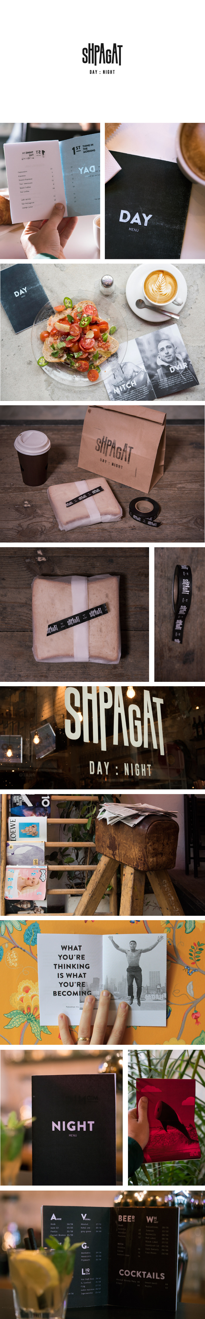 rebranding SHPAGAT. tel avivian gay friendly bar. logo, menu, store sign, take out, monthly fanzine.